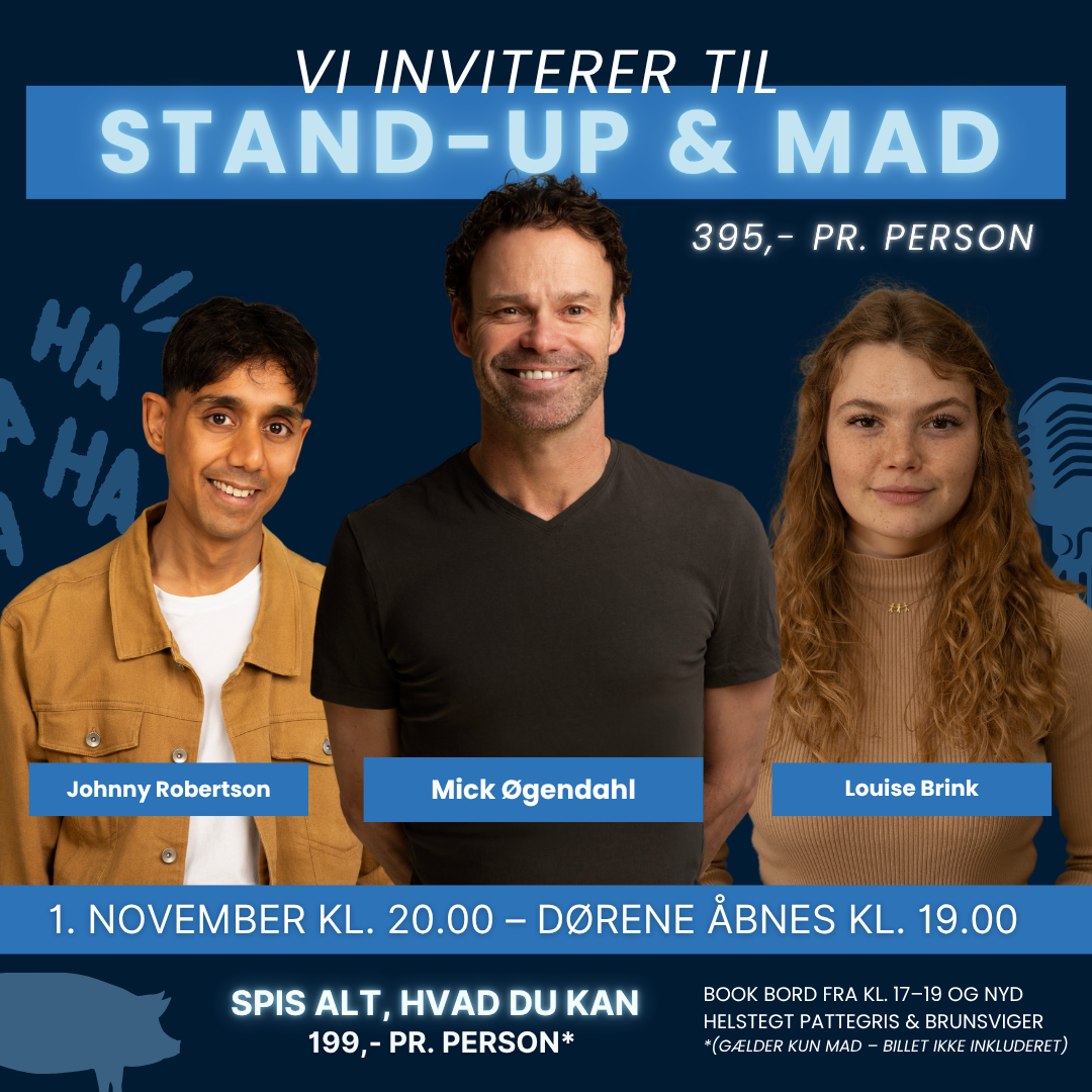 Er du klar til masser af grin og god mad? Kom med til en fantastisk aften med stand-up hos Vigsø! 🎤
